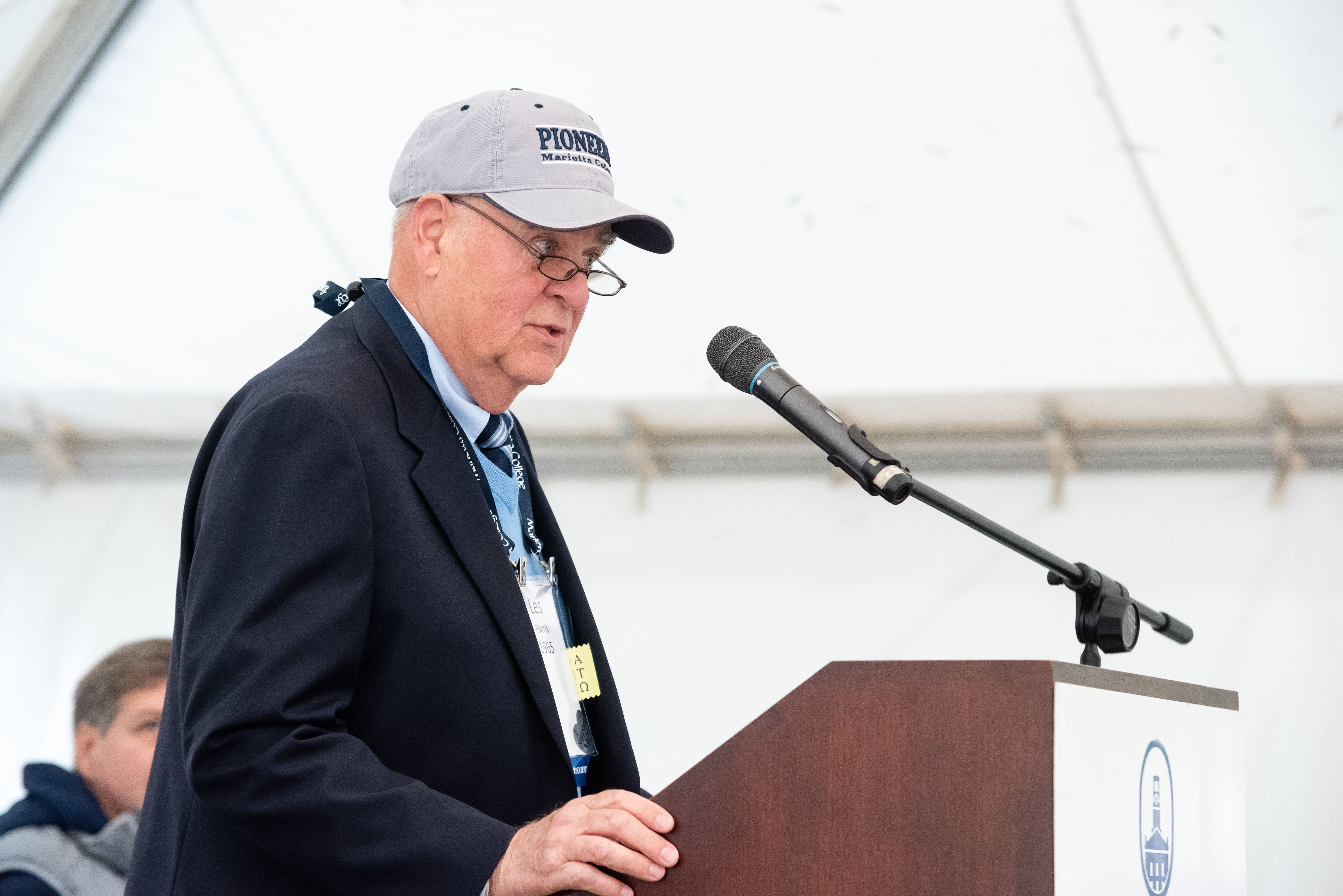 Marietta, Ohio (10/22/2018) — Les Harris '65, who was able to recruit more than 95 of his fraternity brothers to contribute to a scholarship, recently received the Liz Tribett MCAA Service Award from his alma mater, Marietta College in Ohio.