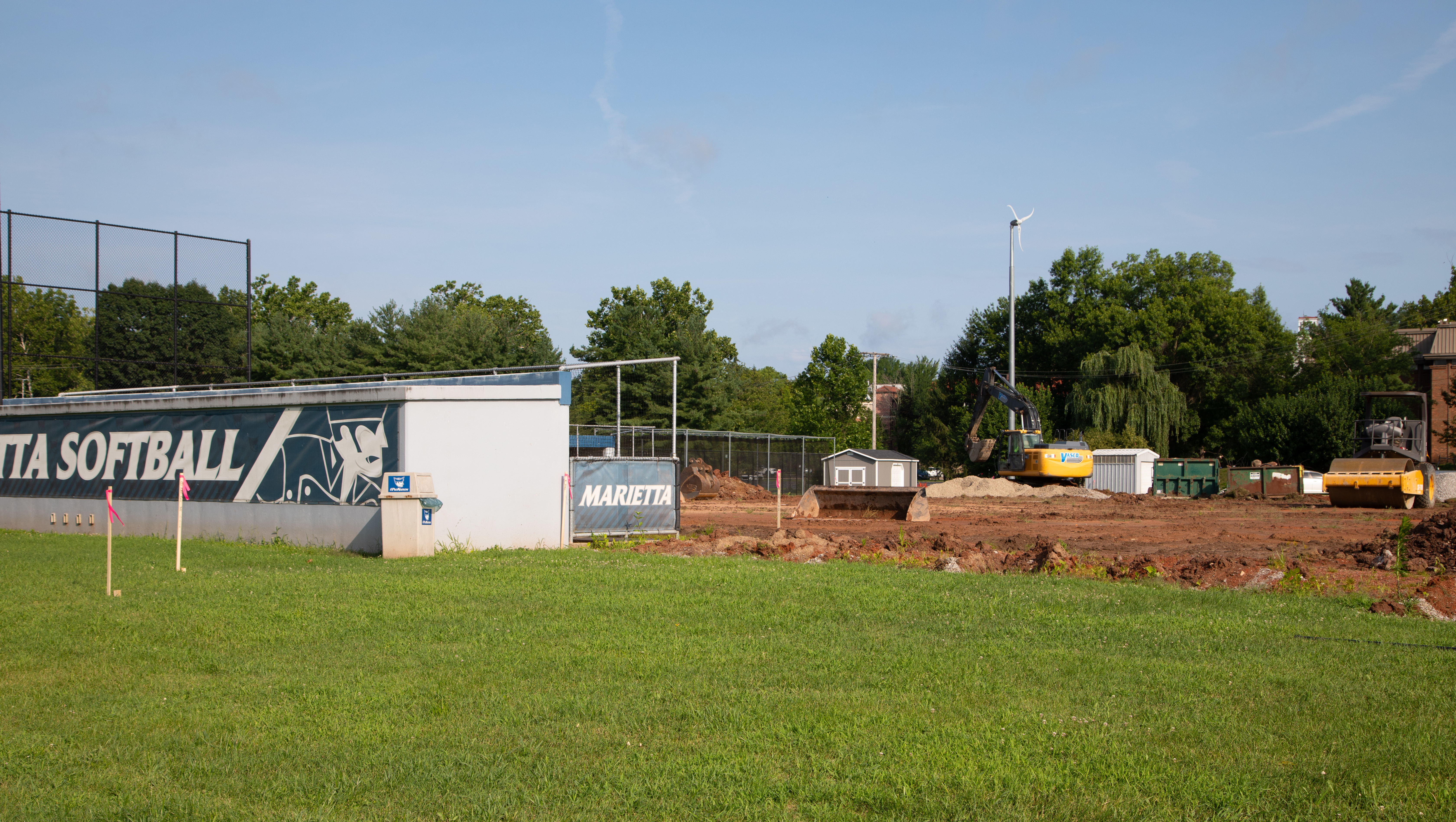One of the most visible campus upgrades is currently underway at Marietta Field, across Greene Street from the Williamstown Bridge. Earthmoving equipment has dirt piled high in preparation for installing an artificial surface for the softball field, the bullpens and the activity space surrounding them. With a price tag of approximately $1 million, this project elevates the softball facility by providing protection from weather damage that can result in delayed or cancelled games and lost practice time. Athletic Director Larry Hiser explained that more time on the field supports player development.